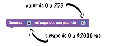 El rango de potencia posible es de 0 a 255. Esto definirá la velocidad de desplazamiento. Esta velocidad dependerá de las características físicas de cada robot: tipo de motor, tamaño de la rueda, peso del objeto, entre otros.